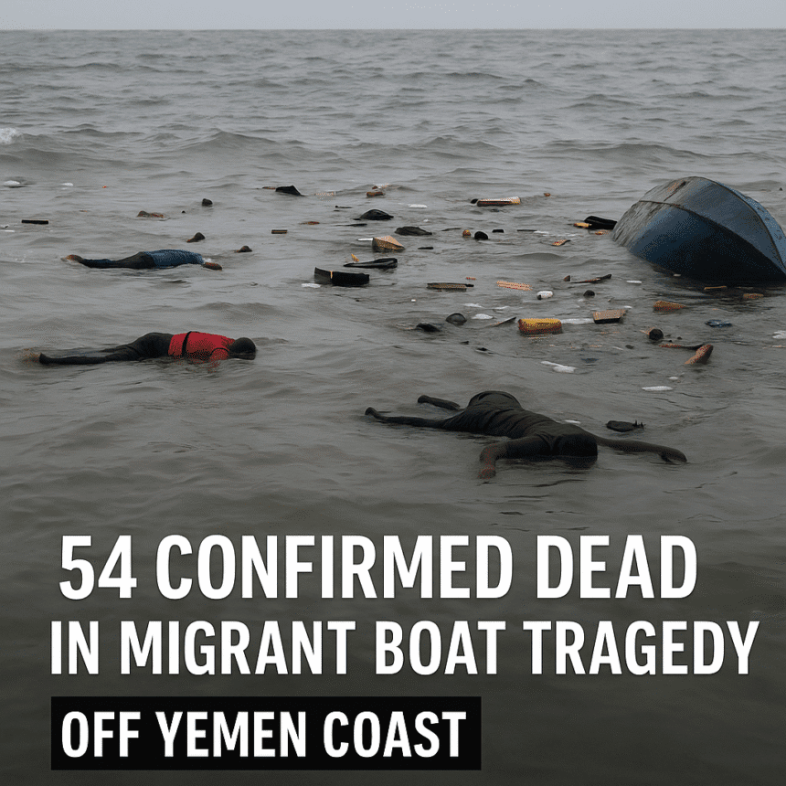 At least 54 migrants have been confirmed dead following a devastating boat accident near the Yemeni coast, according to international agencies and regional news sources.
