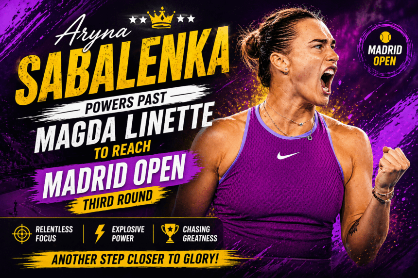 Aryna Sabalenka survived a sluggish start to beat Magda Linette 6-4, 3-6, 6-3 on Saturday, keeping her Madrid Open title defense alive. The world number two struggled with her rhythm early on, but found enough firepower in the decider to avoid a shock exit.