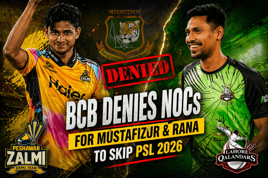 The Bangladesh Cricket Board (BCB) has officially blocked Mustafizur Rahman and Nahid Rana from participating in the 2026 Pakistan Super League (PSL). The board’s decision, communicated to the players earlier this week, effectively ends their hopes of joining the franchise-based tournament in Pakistan.