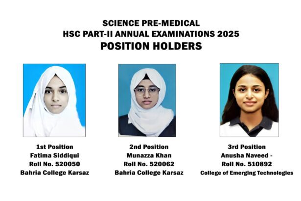 KARACHI: The Board of Intermediate Education Karachi (BIEK) has declared the results of HSC-II Pre-Medical Annual Examinations, 2025 wherein all top three positions have been attained by girl students. BIEK…