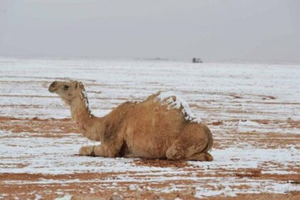 For the first time, Saudi Arabia’s golden Al-Jawf desert turns white after rare snowfall and…