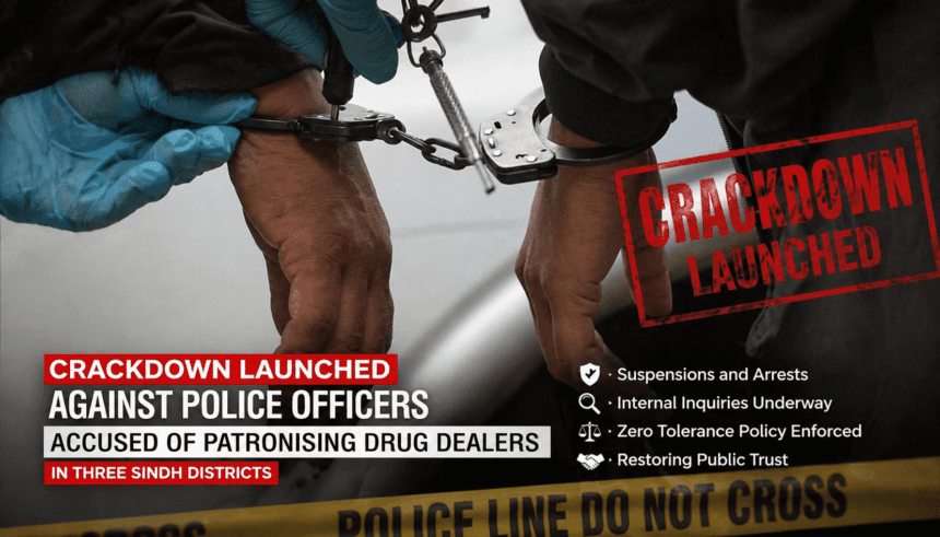 Karachi/Mirpurkhas: A major departmental crackdown has been launched in Sindh against police officers and personnel accused of protecting or facilitating drug traffickers and other criminal networks. According to available details, action began after the Sindh police chief took notice of the matter, leading to an inquiry against more than 50 officials. The reported list includes 33 officers and personnel from Mirpurkhas, 10 from Tharparkar, and 7 from Umerkot. A senior officer was appointed as inquiry officer, while show-cause notices were issued to the accused personnel seeking their explanations.