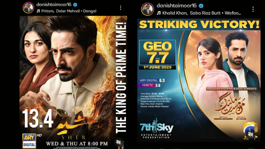 Actor Danish Taimoor has come under intense criticism after proudly sharing the massive viewership numbers of his latest dramas Sher and Mann Mast Malang, despite growing concerns over their controversial content.