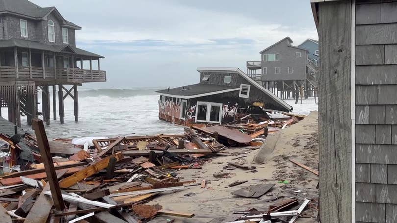 The fury of Hurricane Imelda has left devastation along North Carolina’s Outer Banks, where at least eight oceanfront houses have collapsed into the sea amid relentless waves and stormy tides.