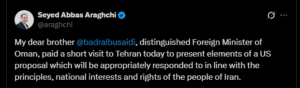 Iran’s Foreign Minister Abbas Araghchi said on Saturday that Iran has received parts of a new US proposal for a possible nuclear deal. The proposal came through Oman, which is acting as a mediator after five rounds of talks.