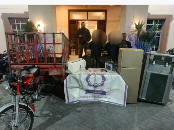 Police recovered a refrigerator, air conditioner, water cooler, cash, other household items, and a stolen rickshaw from their possession. The arrested suspects, identified as Ahmed and Shakeel, had already sold goods worth hundreds of thousands of rupees.