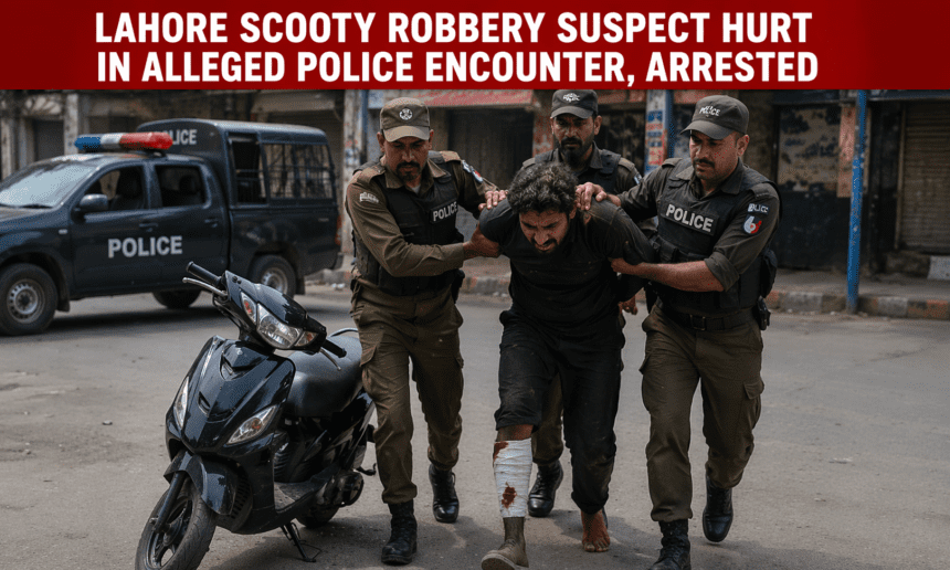 A suspect police say was involved in the robbery of a young woman riding a scooty in Lahore has been arrested after being injured in what authorities described as an “encounter” in the city’s Chung area. The case blew up online after video of the street crime spread across social media and triggered criticism over women’s safety in the provincial capital.