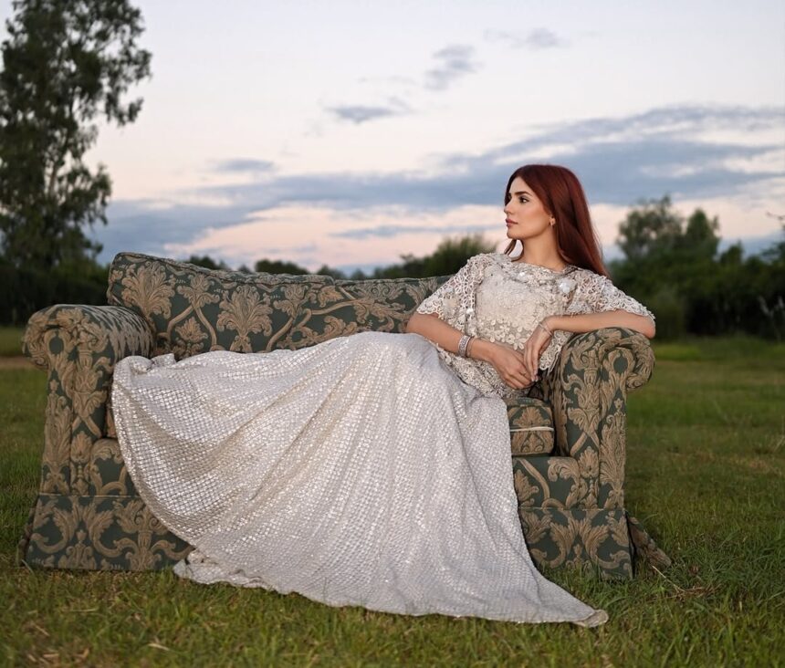 The “Uchiyaan Dewaraan” singer shared a serene photograph on Instagram, seated on a sofa with a scenic backdrop of lush trees and a clear blue sky. Dressed in a white embroidered frock with her signature red hair cascading over her shoulders, Momina appeared peaceful and reflective.
