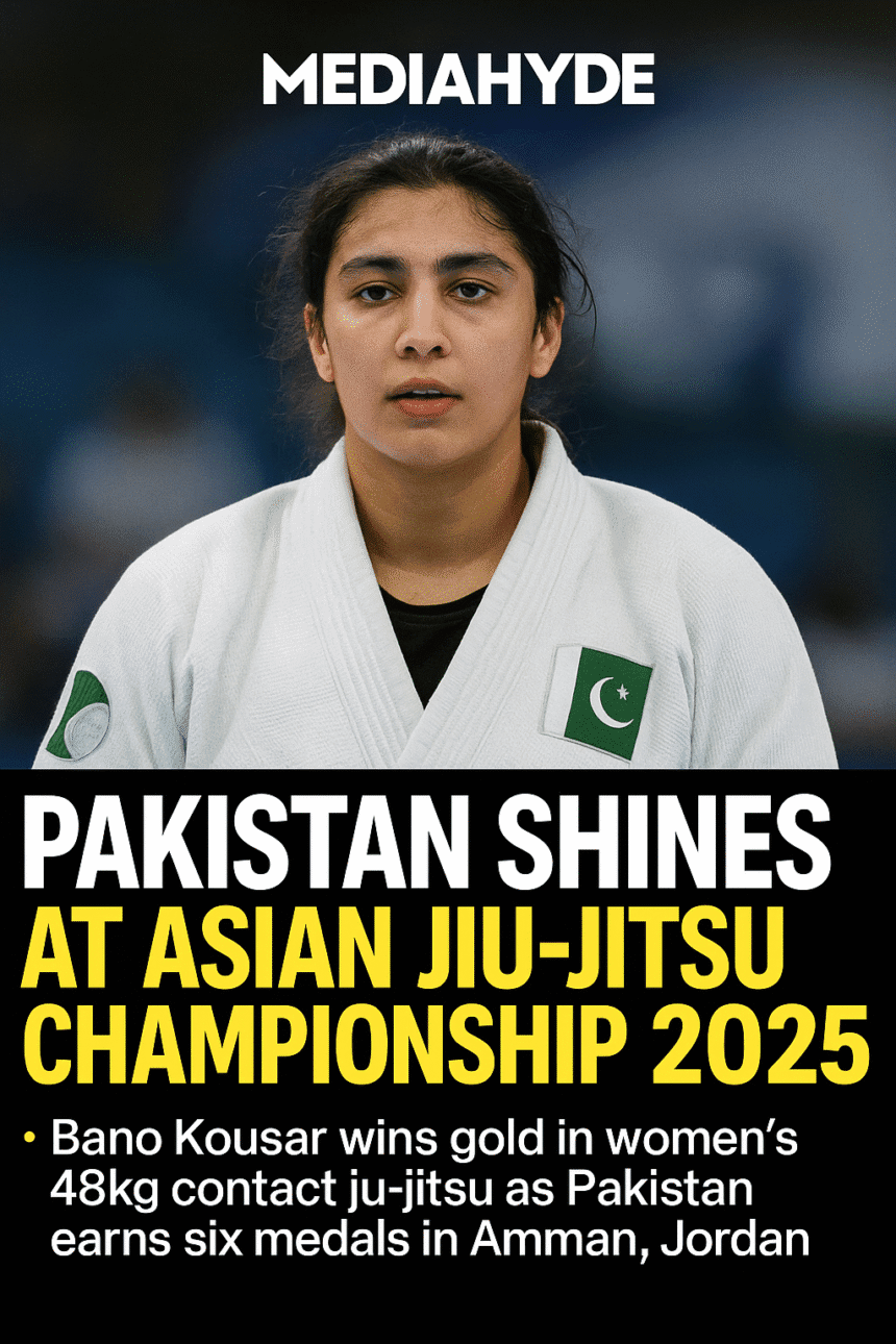 Pakistan’s athletes delivered a remarkable performance at the Asian Jiu-Jitsu Championship 2025 held in Amman, Jordan. Star competitor Bano Kousar won the gold medal in the women’s 48kg contact ju-jitsu category, making history for Pakistan on the continental stage.