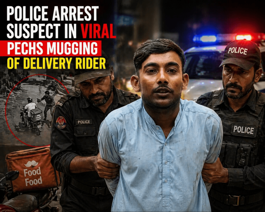 Karachi police say they have arrested a suspect allegedly involved in the mugging of an online delivery rider in PECHS, a case that went viral after footage of the incident spread widely on social media. According to ARY News, the arrest was made following an encounter near Baloch Pull.