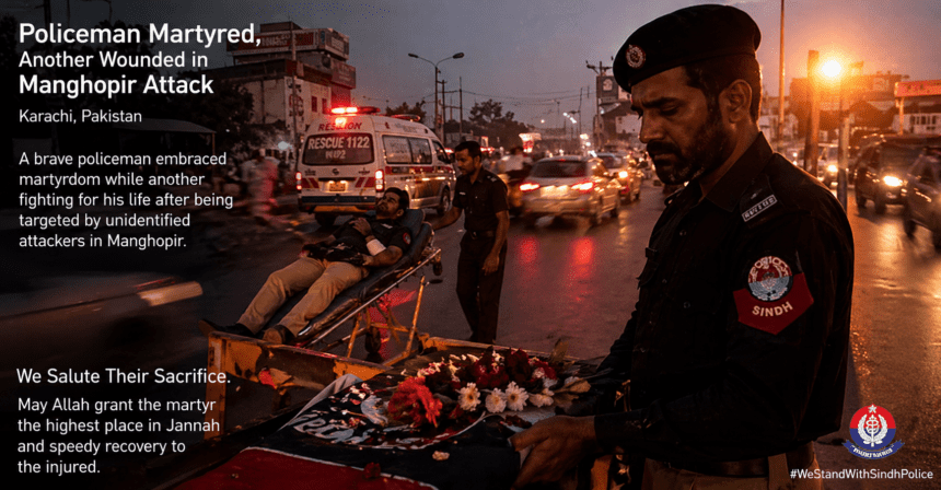 A police constable was killed and another wounded after armed men on a motorcycle opened fire on a patrolling police team near the Hub Canal area of Manghopir in Karachi’s West district on Thursday, April 16, 2026.