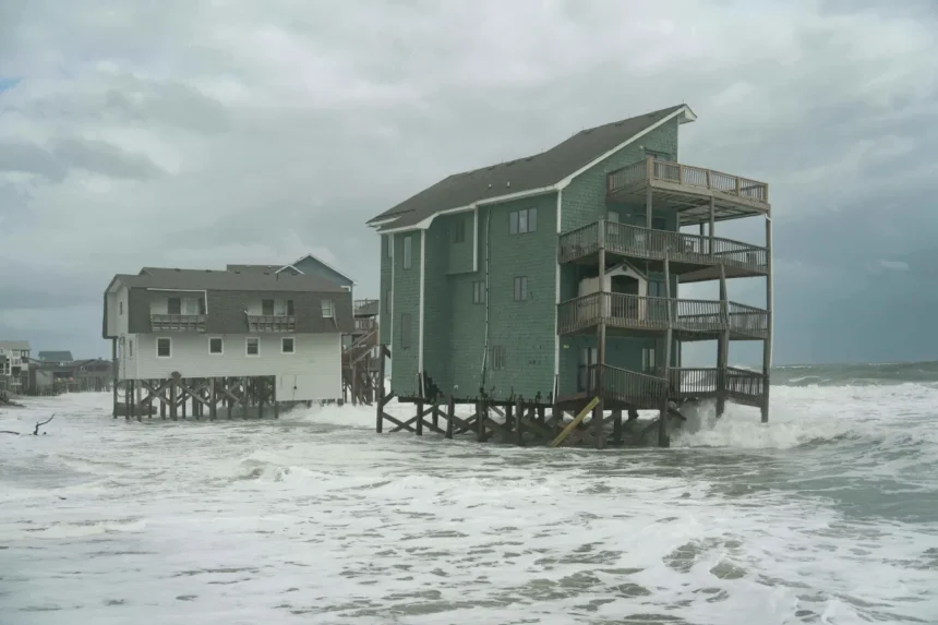 Officials in North Carolina’s Outer Banks warned that continued high tides and strong winds could make Highway N.C. 12 impassable.