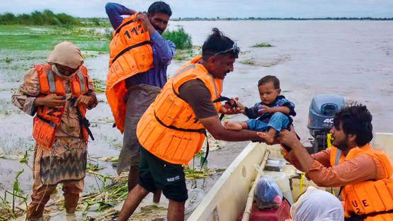 The Sutlej River is also in high flood, with flows of 261,000 cusecs at Ganda Singh Wala and 109,000 cusecs at Head Sulemanki. In Chishtian, six protective embankments collapsed, flooding over 300 villages and destroying crops spread across 7,000 acres.