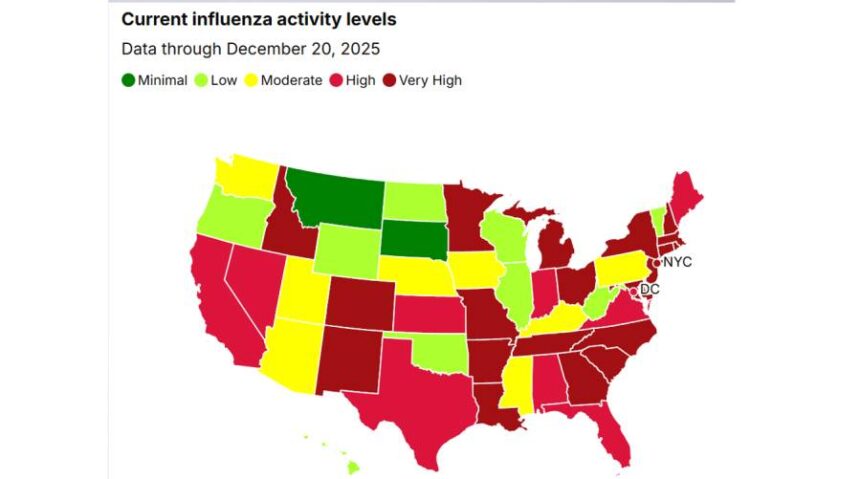 The CDC has classified flu transmission as “very high” in 21 states, with New York City, New York State, New Jersey, South Carolina, Louisiana, and Colorado reporting the most intense spread. New York alone recorded more than 71,000 flu cases in a single week — the highest weekly total ever documented by the state.
