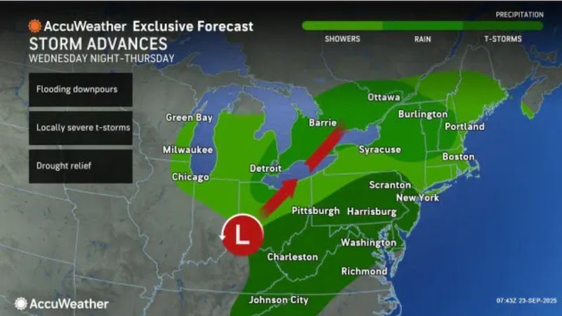 The National Weather Service has placed the region under a marginal risk for severe storms, meaning isolated damaging wind gusts are possible. Rainfall totals are expected to reach 1 to 2 inches through Thursday, though some spots could pick up even more if storms linger. Forecasters caution that heavy downpours could quickly overwhelm drainage systems, especially in urban areas.
