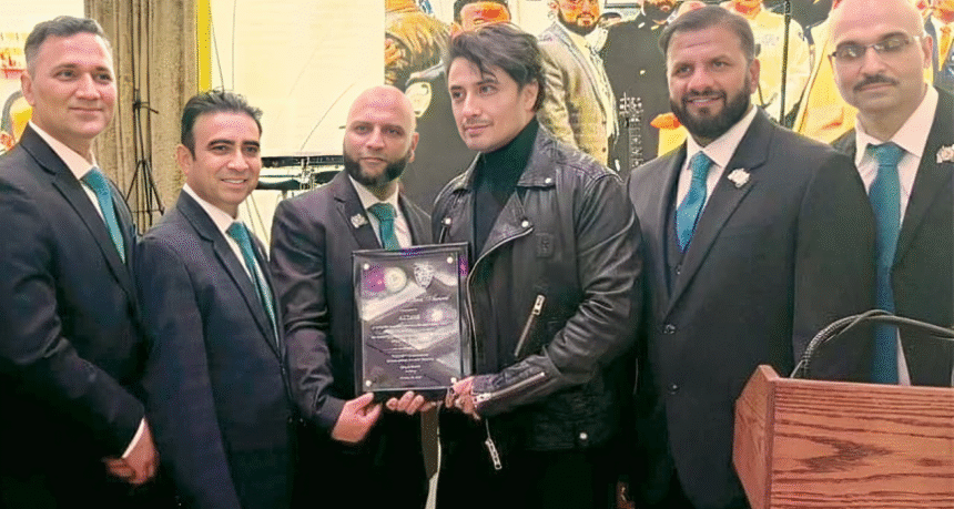 نیویارک: پاکستان کے معروف گلوکار اور اداکار علی ظفر کو پاکستانی امریکن لاء انفورسمنٹ سوسائٹی (PALES) کی جانب سے موسیقی اور ثقافت کے فروغ میں نمایاں خدمات پر ’کلچرل آئیکون ایوارڈ‘ سے نوازا گیا۔