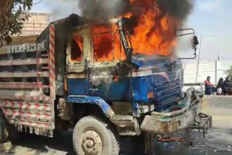کراچی میں ڈمپر کی ٹکر سے نوجوان جاں بحق، مشتعل افراد نے گاڑی جلا دی