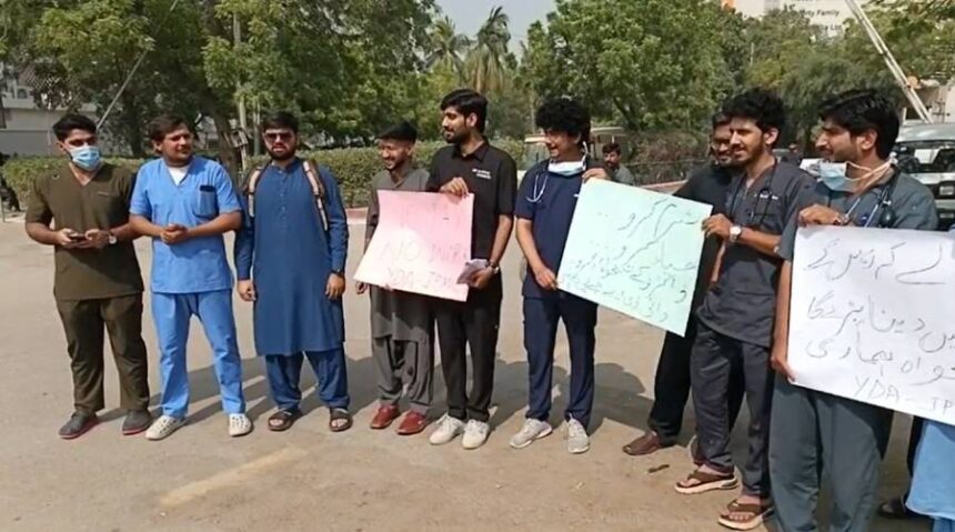 KARACHI: The Young Doctors Association (YDA) launched a protest in front of the administration block of Jinnah Postgraduate Medical Centre (JPMC), demanding immediate release of pending salaries that have not been paid for several months.