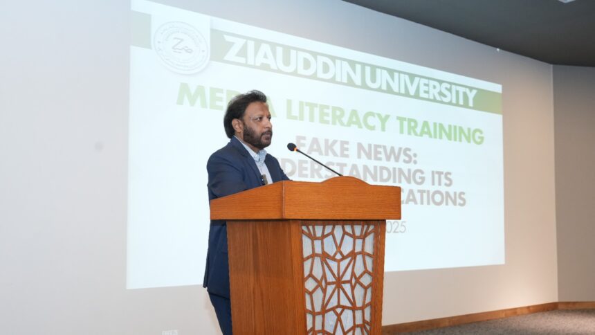 Ziauddin University held an HEC-mandated media literacy training titled “Fake News: Understanding its Impact and Implications” to educate students and faculty on identifying fake news and promoting ethical media consumption.